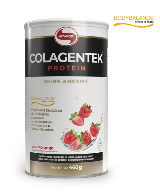 COLAGENTEK® PROTEIN é um suplemento à base de colágeno hidrolisado com a tecnologia BODYBALANCE®, adicionada aos ingredientes: glutamina, ácido hialurônico, vitaminas C e D, magnésio e zinco.