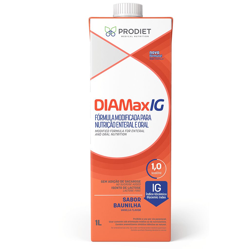 Fórmula nutricionalmente completa, para uso oral ou enteral, desenvolvida especialmente para o controle da glicemia. Com baixo índice glicêmico, isento de sacarose e 28 vitaminas e minerais, DiamaxIG é ideal para a praticidade do dia a dia. 1 LITRO de DIAMAX IG, fornece 1000 Kcal